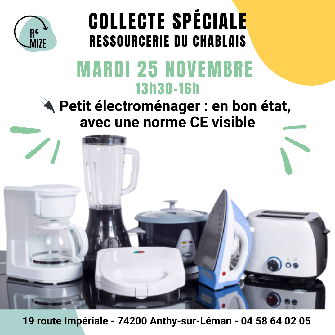 - Douvaine : lundi mardi 9h30-11h40, vendredi 9h30-11h40/ 14h-16h30. Le mercredi, une benne "orange" est à disposition pour collecter vos dons pour la R'mize.