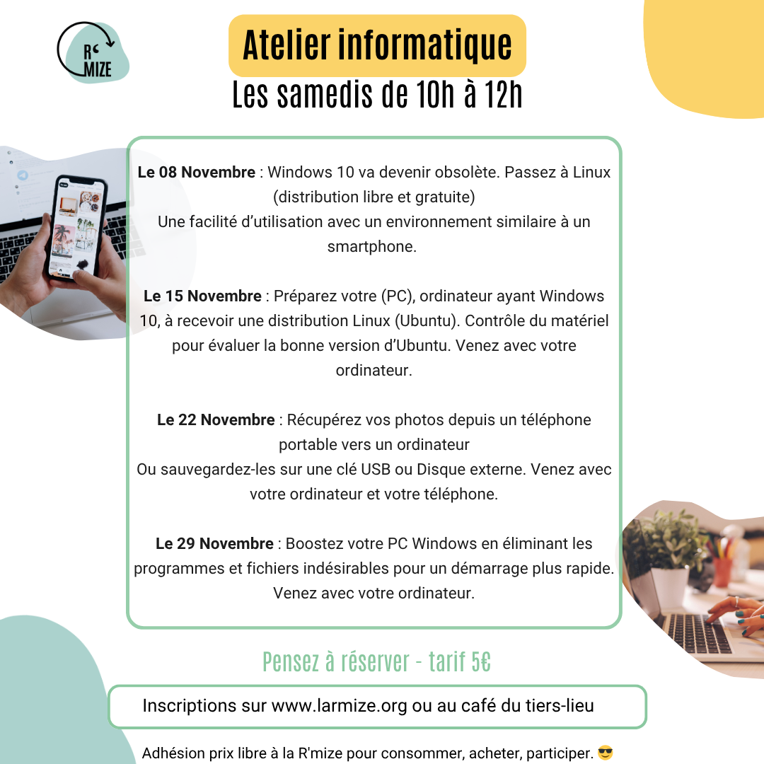- Le 1er mardi du mois de 10h à 16h et 1er samedi 9h à 12h à la R'mize,